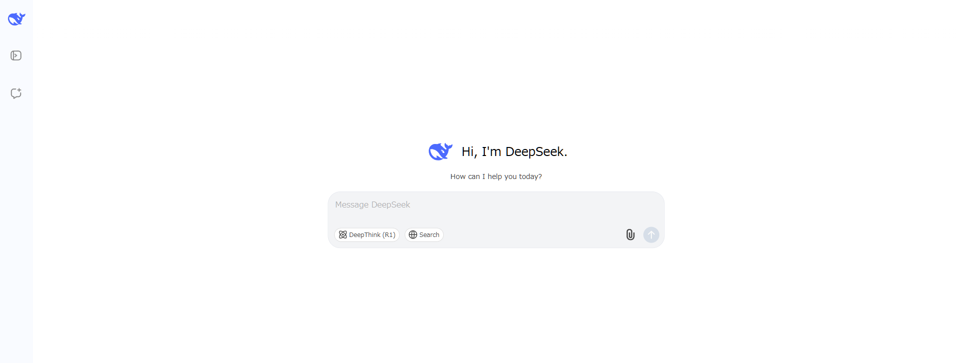 デフォルトのモデルはV3で、チャット入力欄の左下のボタンを押せば、推論モデルのR1も使えます。隣のボタンはWebサーチの機能です。